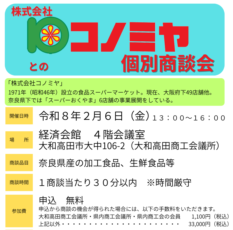 「株式会社コノミヤ」との個別商談会 開催のお知らせ